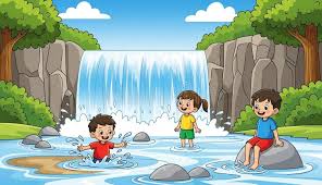 Waterfall (n): A waterfall is water that falls from a high place, like a mountain or a cliff.